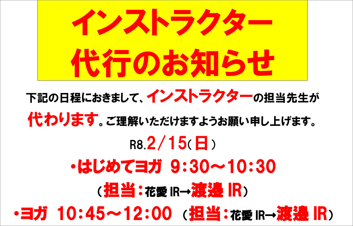 R8.2.15 フィットネス教室インストラクター代行のお知らせ