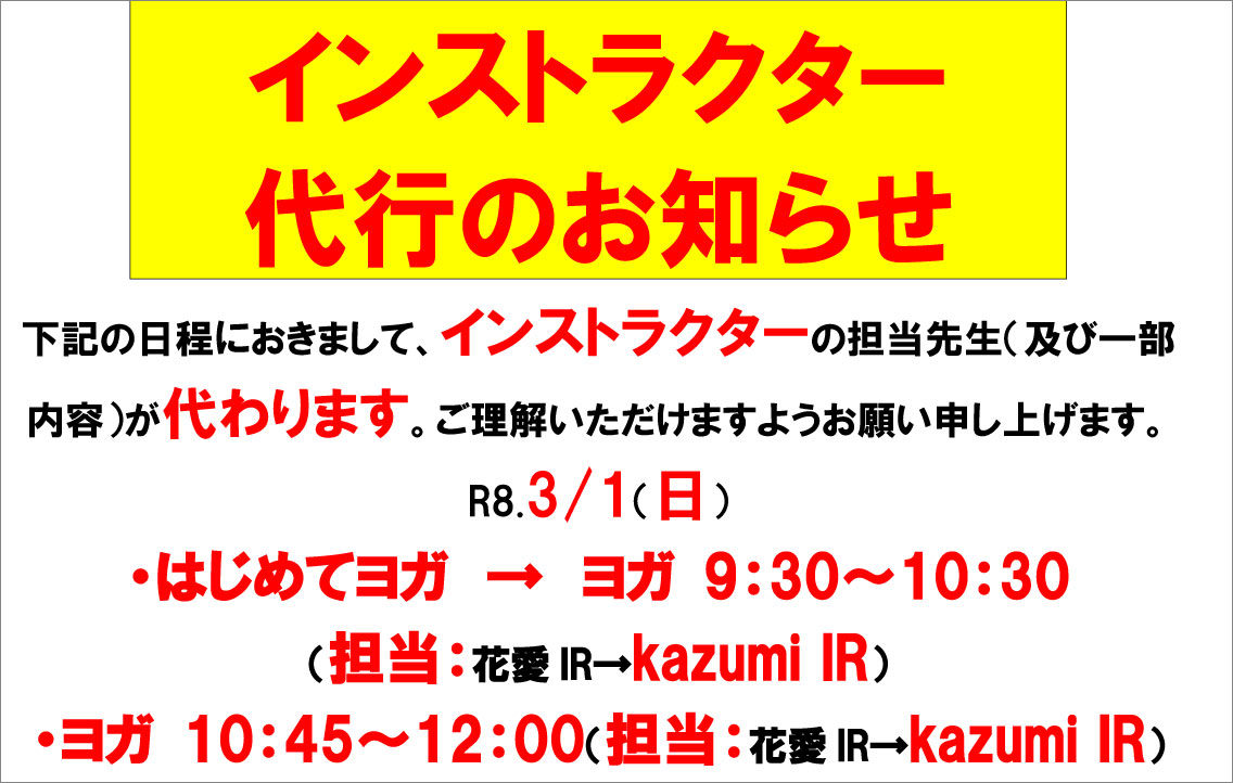 R8.3.1 フィットネス教室インストラクター代行のお知らせ