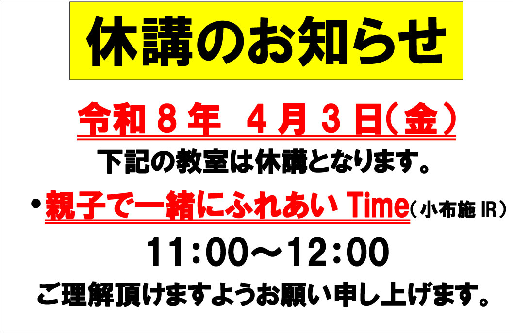 R8.4.3 フィットネス教室休講のお知らせ
