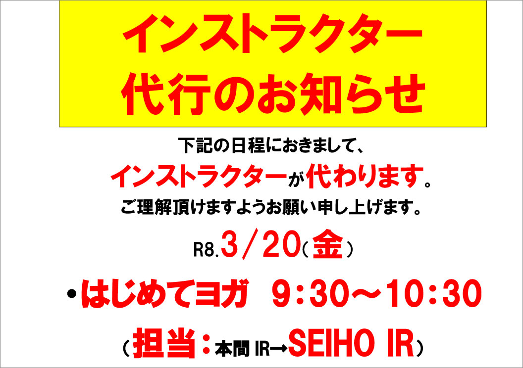R8.3.20 フィットネス教室インストラクター代行のお知らせ